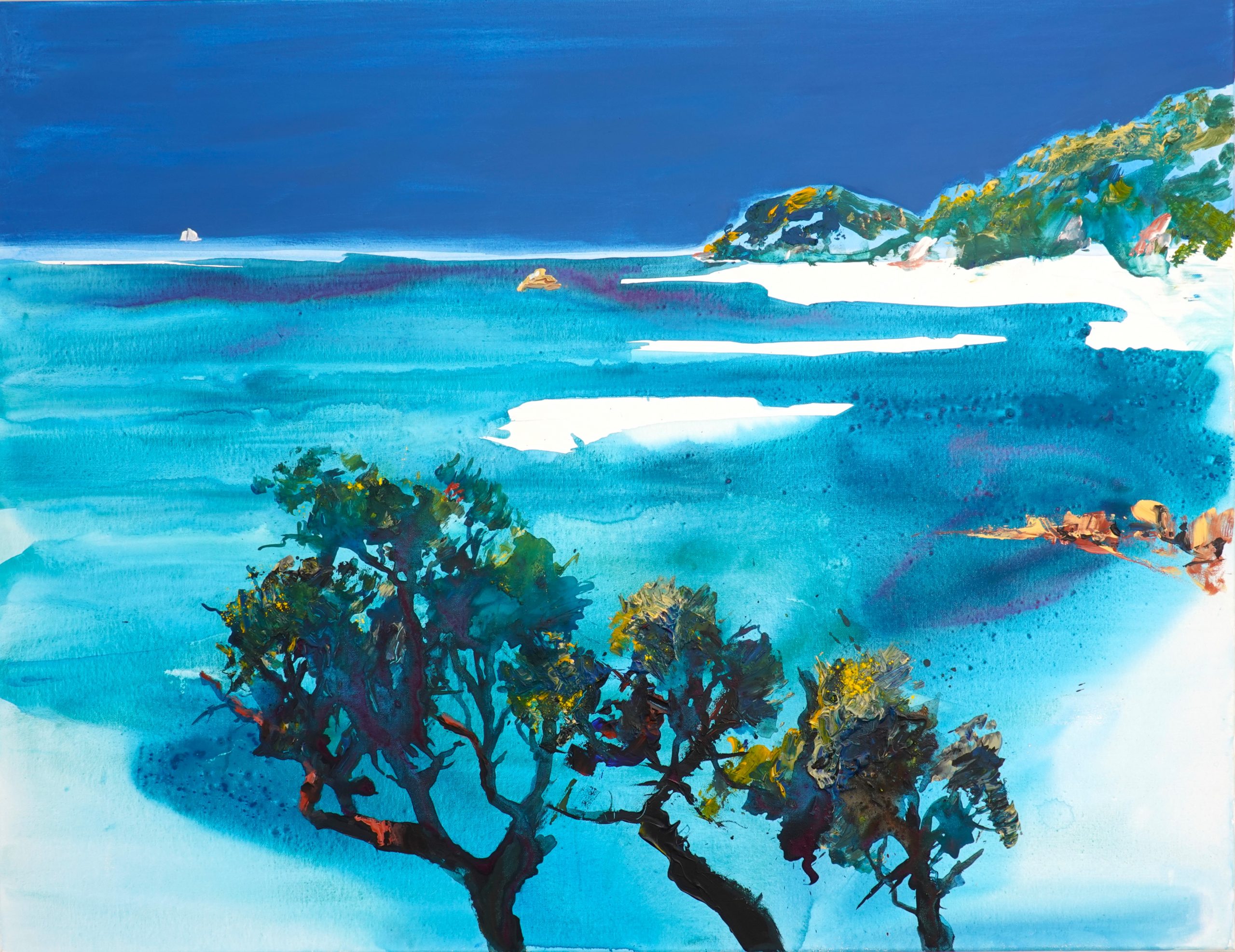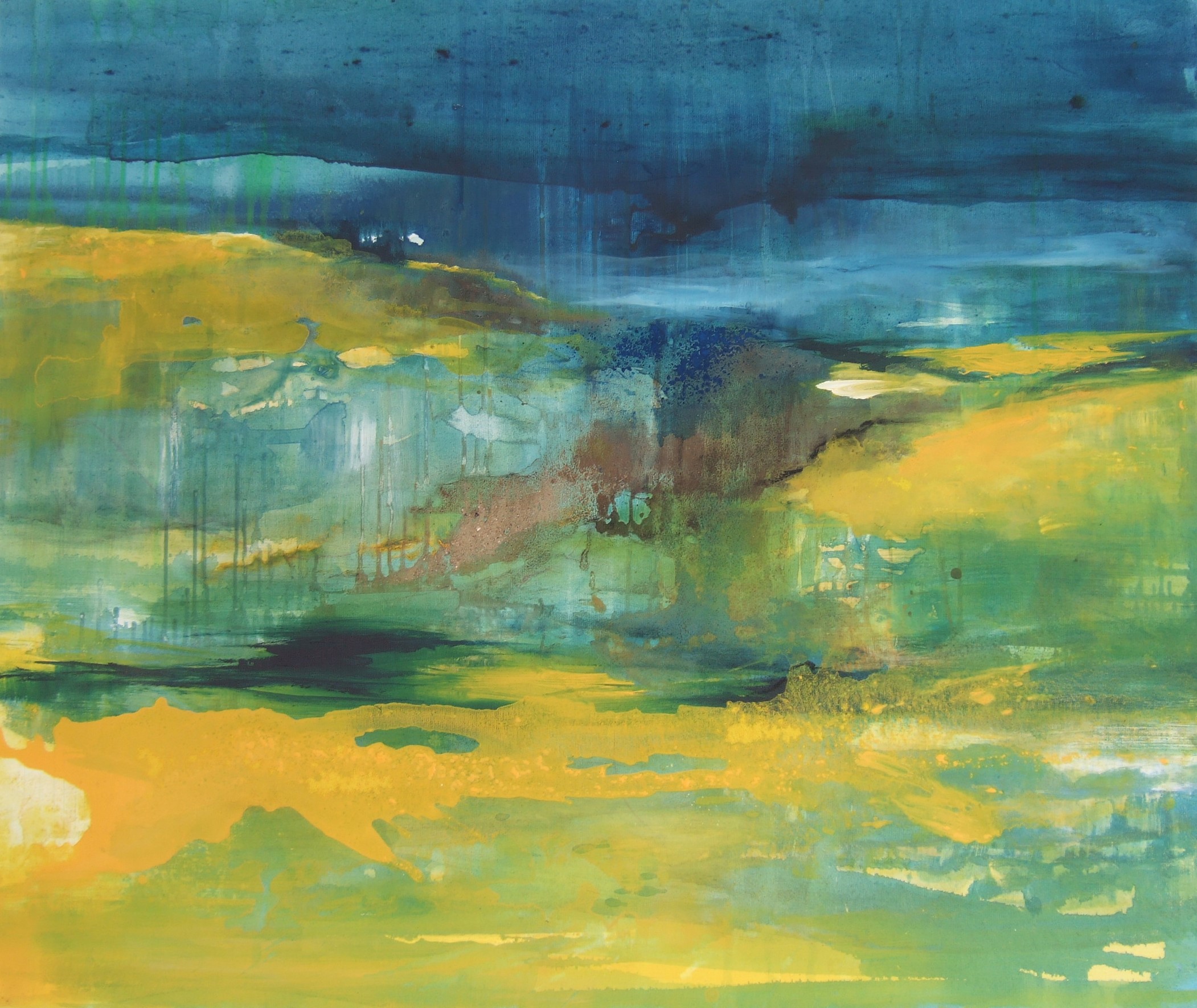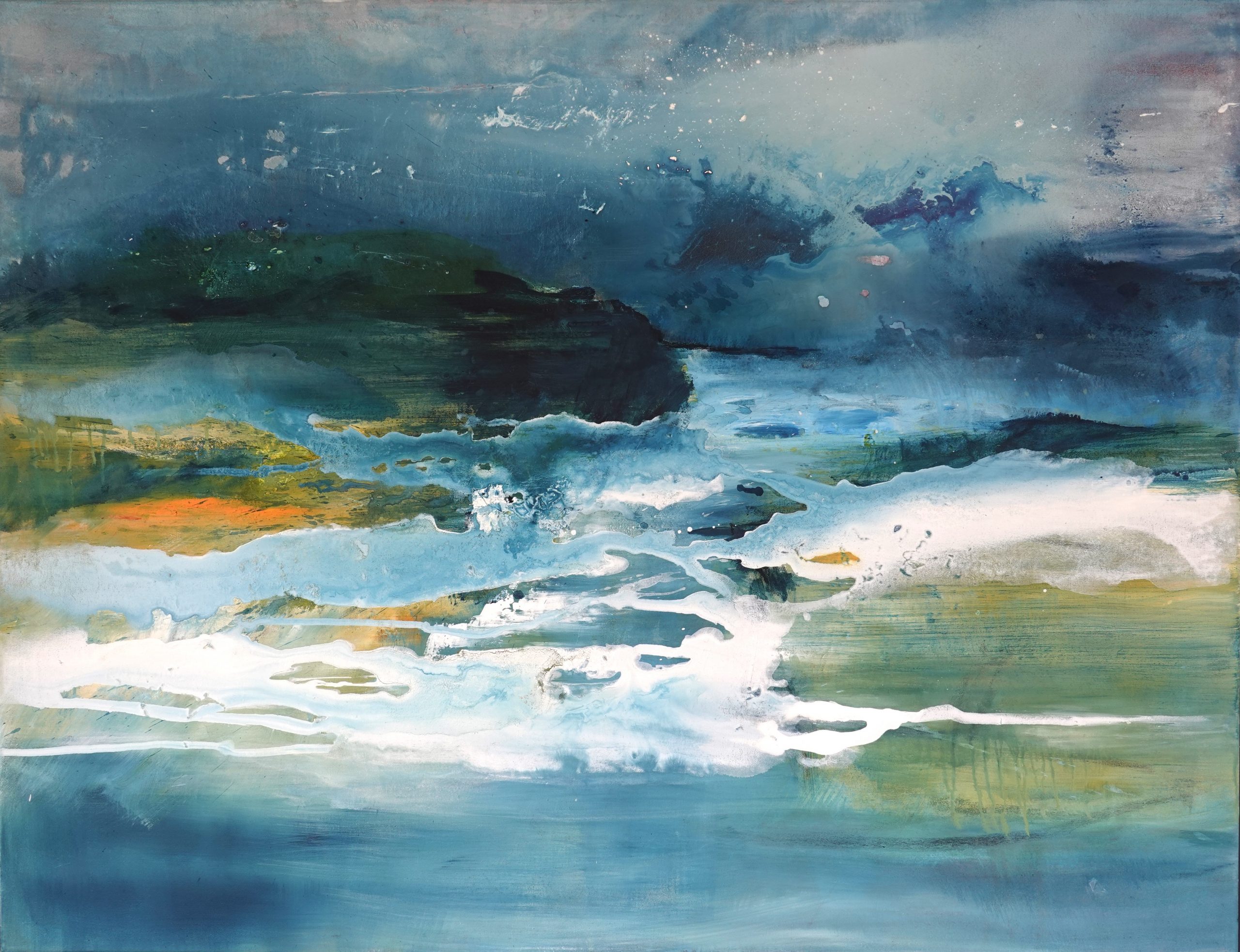 Das Duo arbeitet im gemeinsamen Atelier in Mensfelden zwar eng zusammen und teilt die Begeisterung für Landschaftsmotive, allerdings gehen beide mit dem Sujet unterschiedlich um. Uschi Scherer hält es mit dem Abstrakten. Doch trotz dieser Abstraktion machen ihre Acrylbilder – gerne kombiniert mit Zeichnungen oder dem Einsatz von Pigmenten – die Vielgestaltigkeit der Natur unmittelbar greifbar. Vor allem die Gewalten des Wassers finden einen dynamischen Ausdruck.